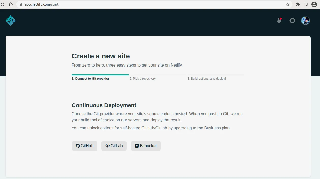 First signup to Netlify.com