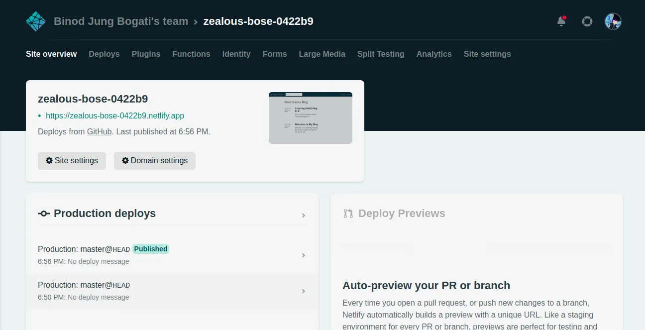- After deployment, you’ll see your netlify dashboard for your blog.