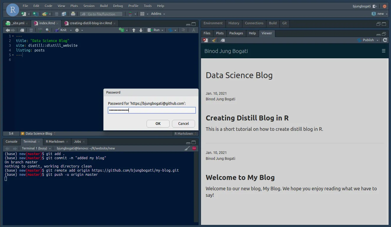 We are going to create GitHub Repository for our distill blog. This is because, we can update our blog with git push.