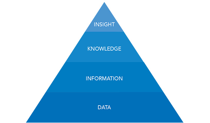 Here, we have DIKI pyramid showing relationships between data, information, knowledge, and insights.
