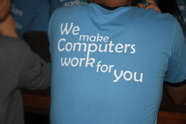No sooner, I entered the hall, I saw lots of new people with blue t-shirt with tag “We make Computers Work for you”.